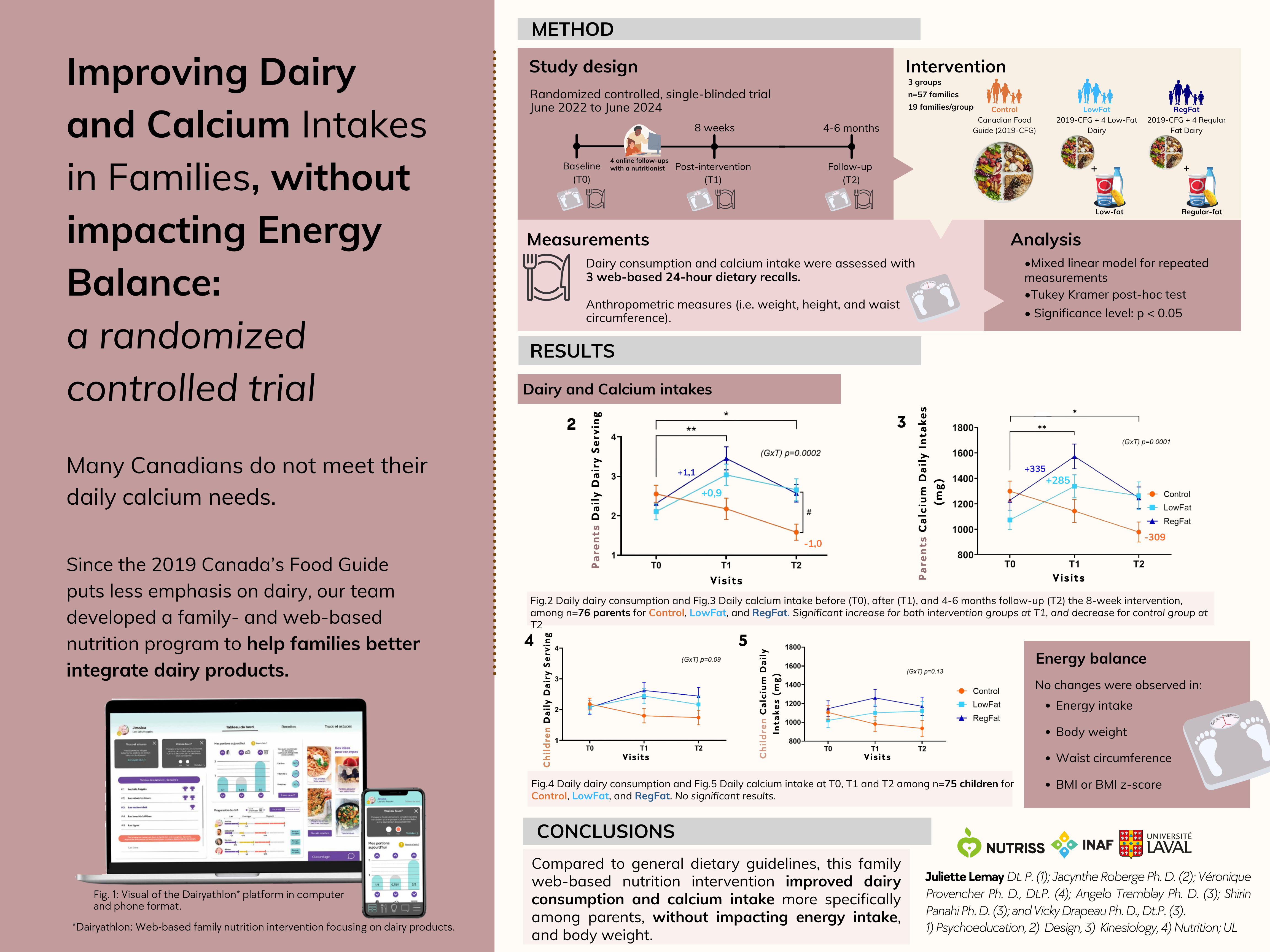 Améliorer les apports en produits laitiers et en calcium dans les familles, sans impacter l’équilibre énergétique : un essai contrôlé randomisé.